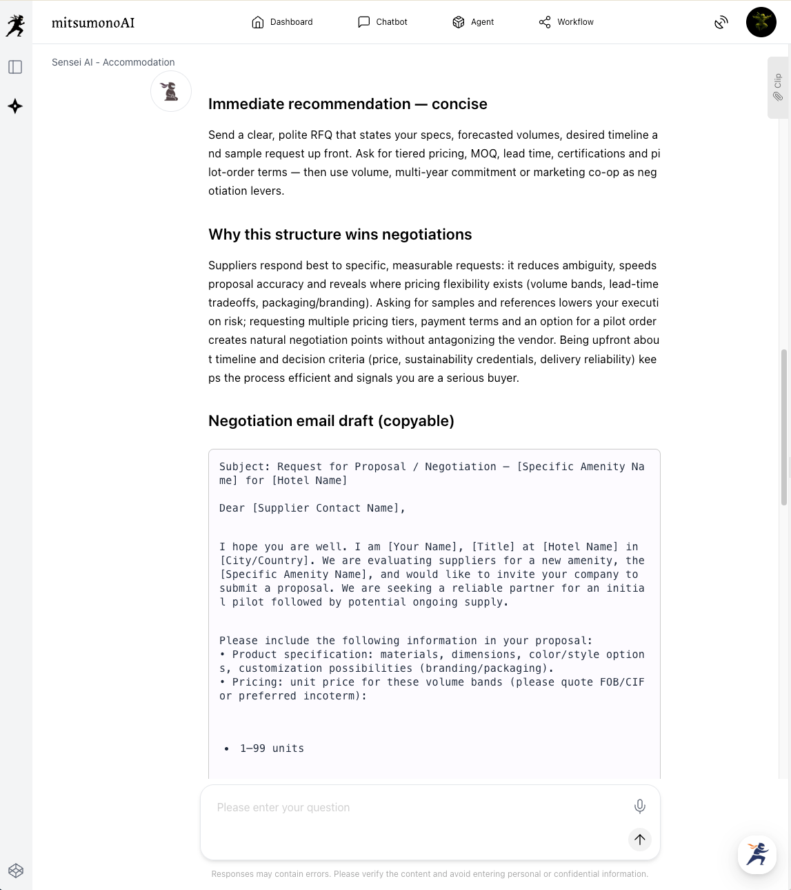 Step 3: [Sensei AI - Hospitality] Create Negotiation Email to Suppliers