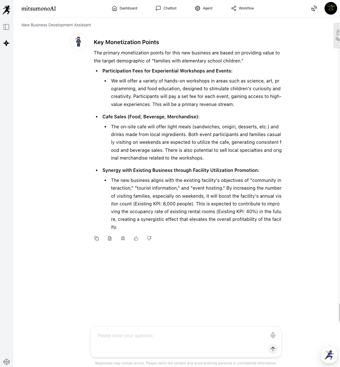By deeply exploring challenges and concerns in business execution through dialogue with AI, you can refine ideas into actionable forms. Specific next steps will become clear, such as changes in business content if the target audience is changed, or consideration of measures to reduce operational burden.