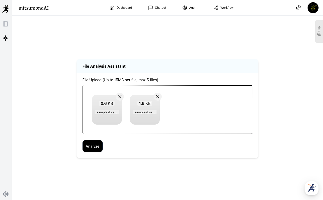 Upload the collected and organized event-related data to the "File Analysis Assistant" to prepare for analysis.
