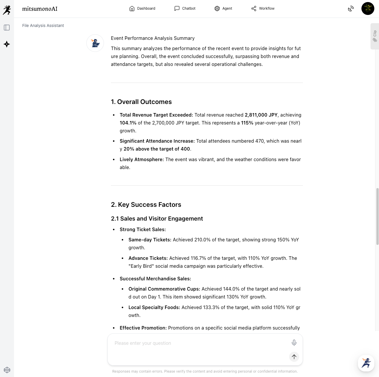 The AI comprehensively analyzes quantitative and qualitative data such as sales figures and survey results, allowing for an objective grasp of the event's success factors and challenges. - Data-Driven Planning of Next Initiatives