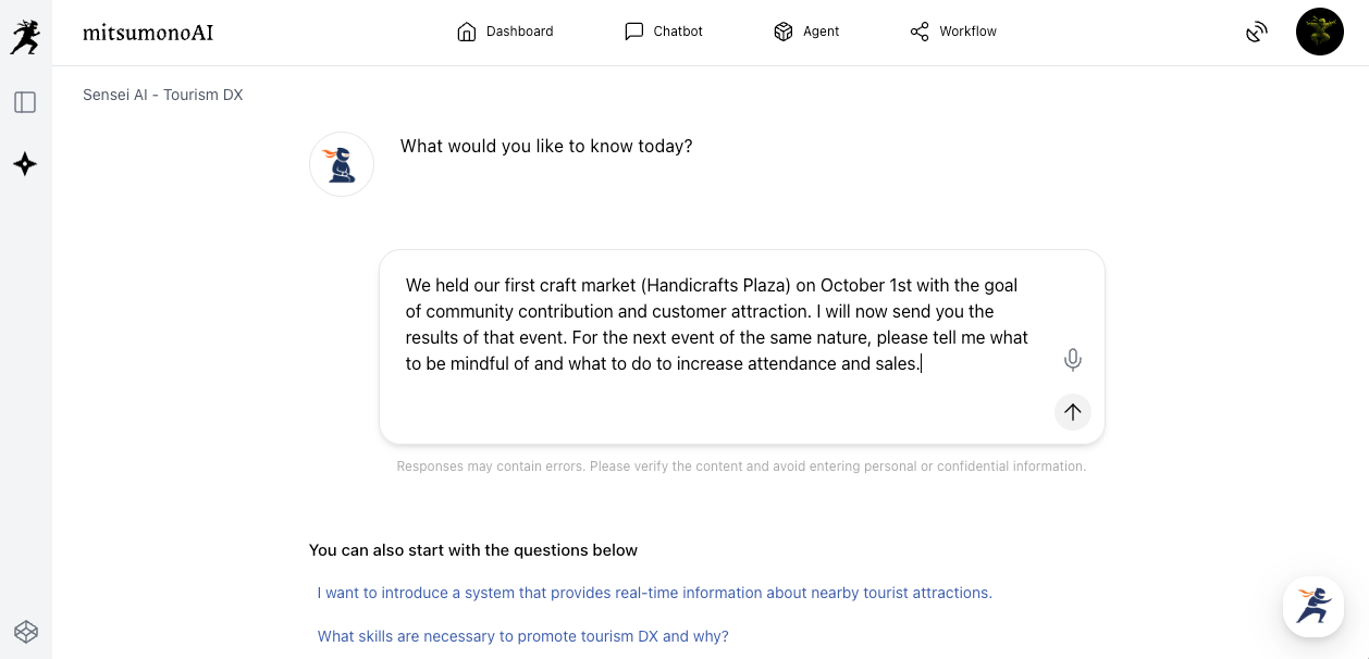 You can deepen your thoughts through further dialogue with Sensei AI by asking questions like, "What kind of budget is needed for this measure?" or "Do you have specific SNS post ideas?"