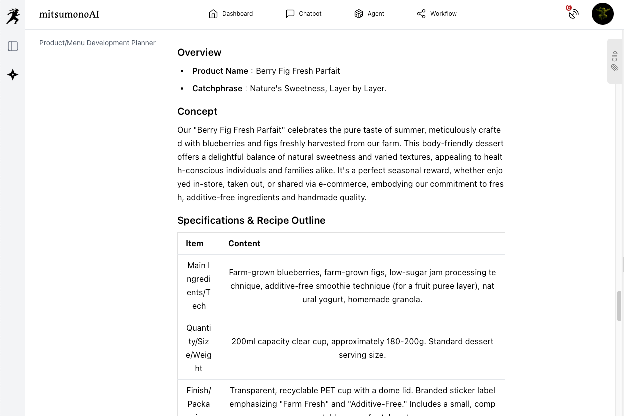 Use the "Product/Menu Development Planner" to input the background, aim of development, and intended target audience to generate product concepts.