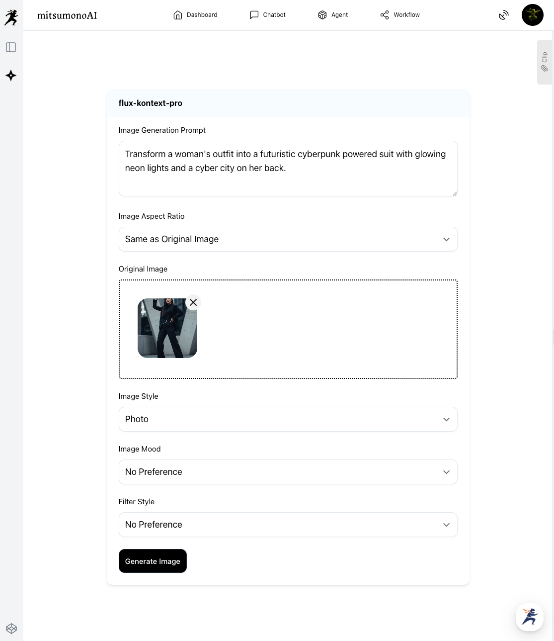 mitsumonoAI supports your entire creative workflow—from editing and generating images from scratch to creating logos and drafting social media copy for those images.