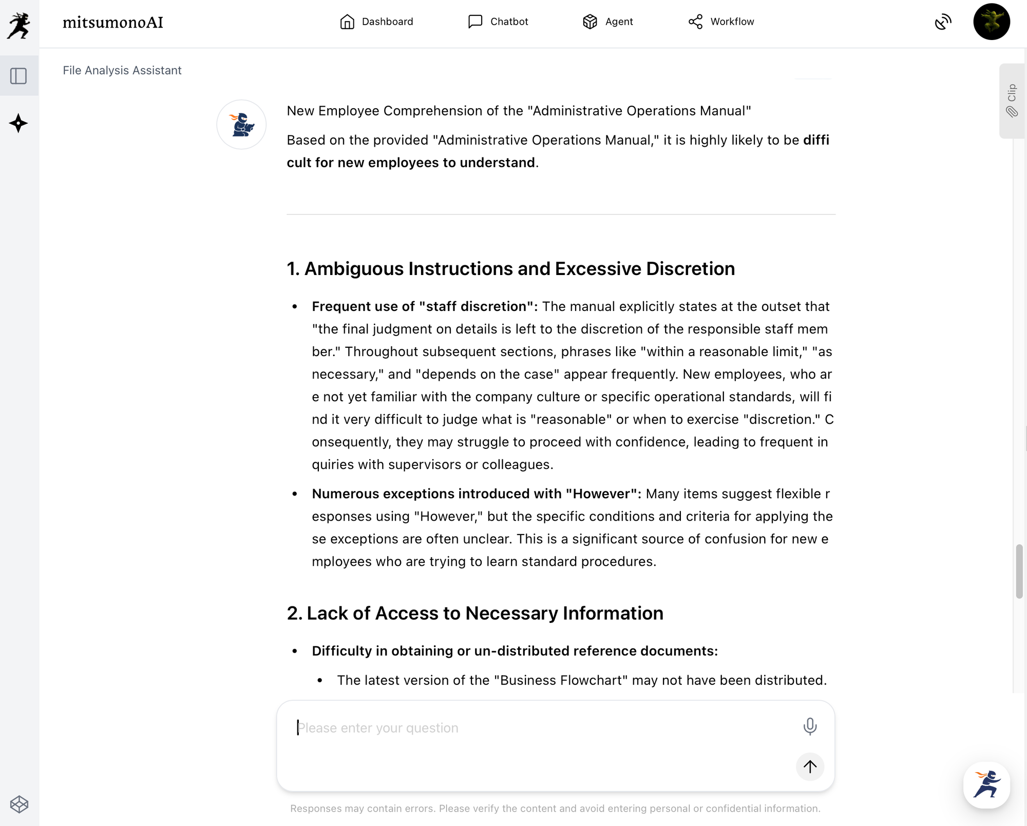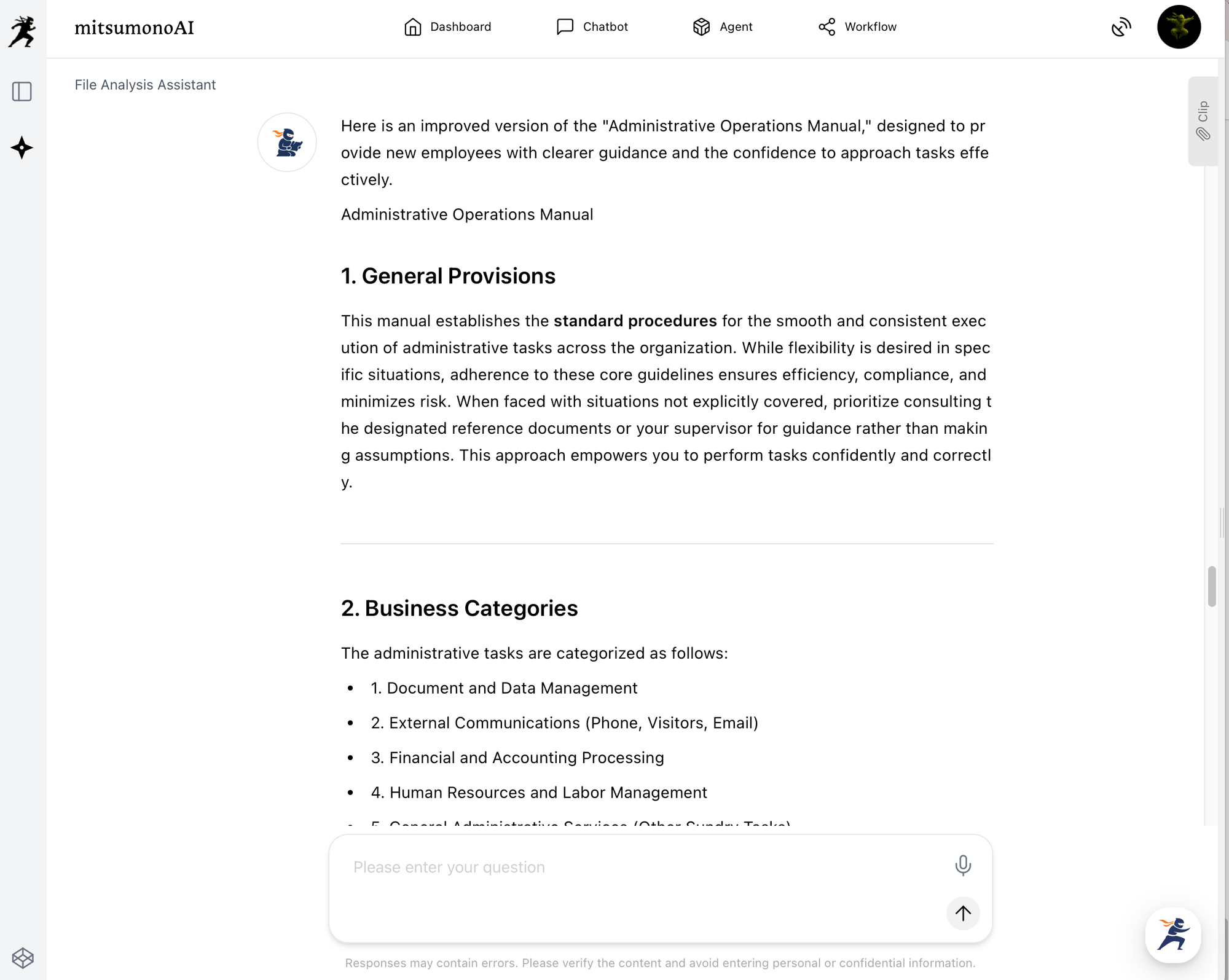 After the upload, ask questions about the file. By posing questions about the manual, as shown below, you can receive answers from the AI.