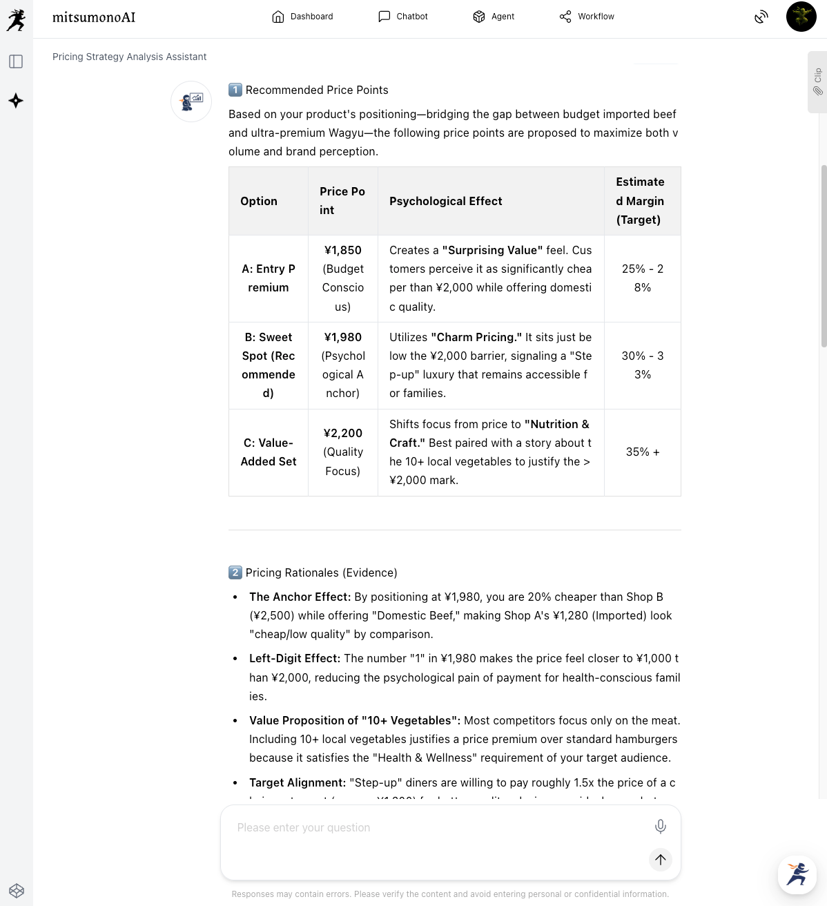 Next, based on the estimated costs from Step 1, use the Pricing Strategy Assistant to determine an optimal price that ensures profitability while remaining fair to the customer.
