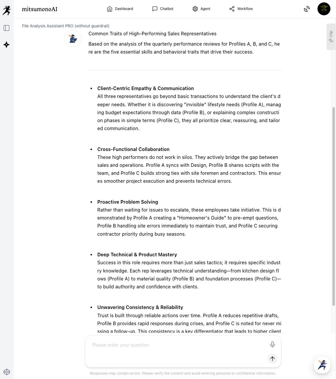 1. Extract characteristics of top performers with the [File Analysis Assistant]