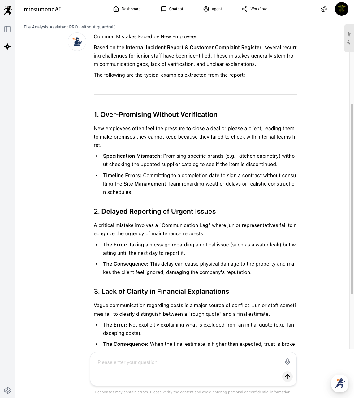 Upload past trouble reports or customer complaint logs and have the AI extract "typical failure cases that new hires are likely to face."