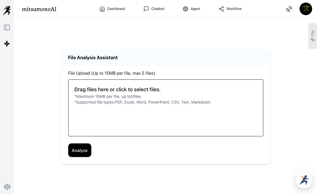 First, upload the source data for analysis to the "File Analysis Assistant."