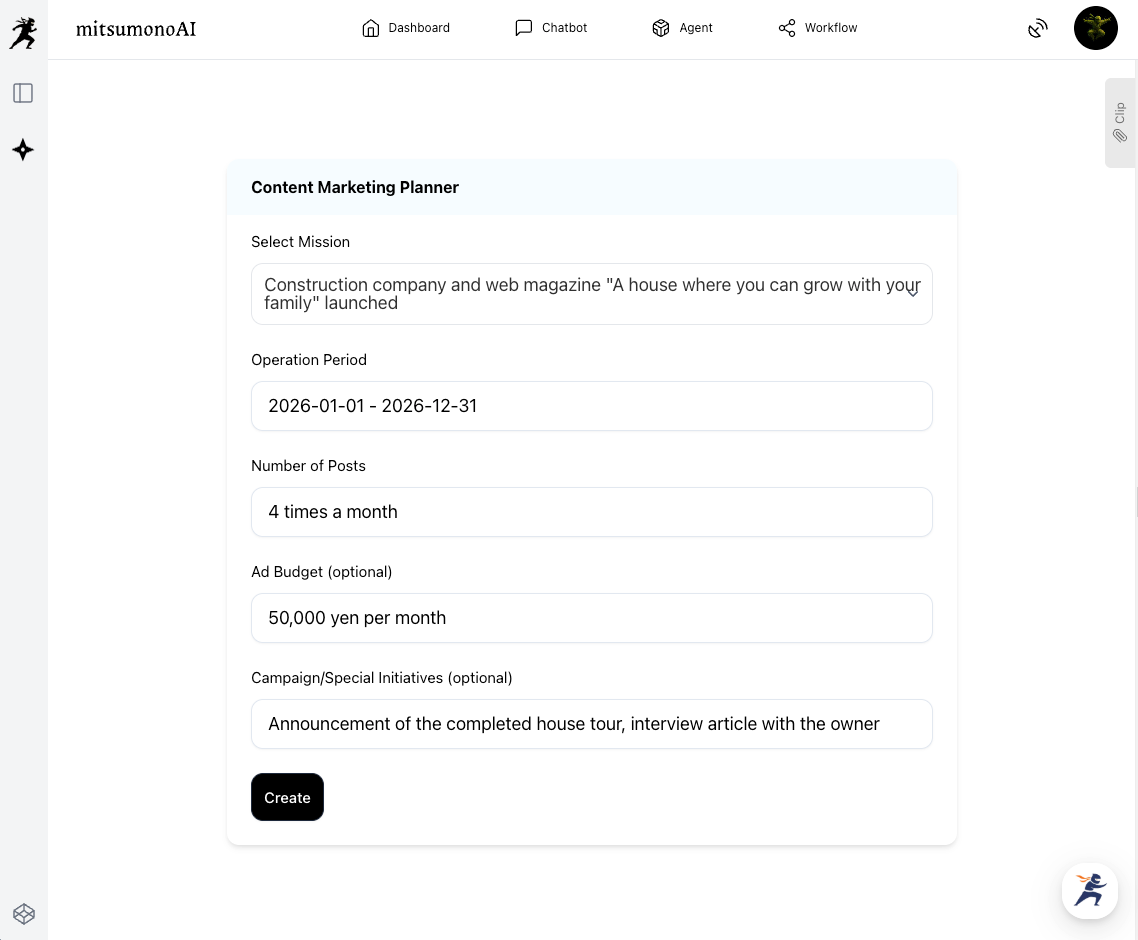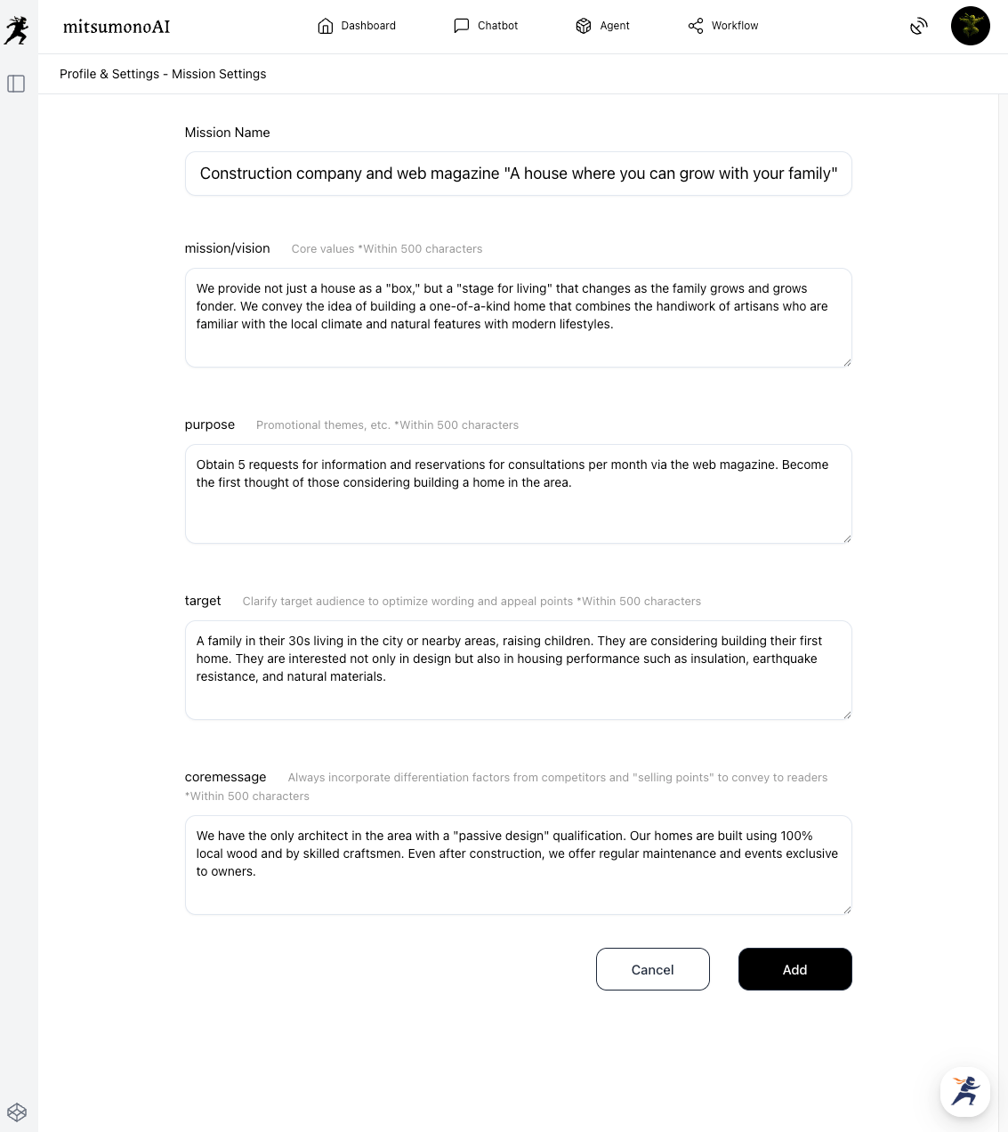 First, clearly define the "purpose of the media," which is the foundation of all content, and install it into the AI as a "Mission." (In this case, let’s imagine a local homebuilder launching owned media.)