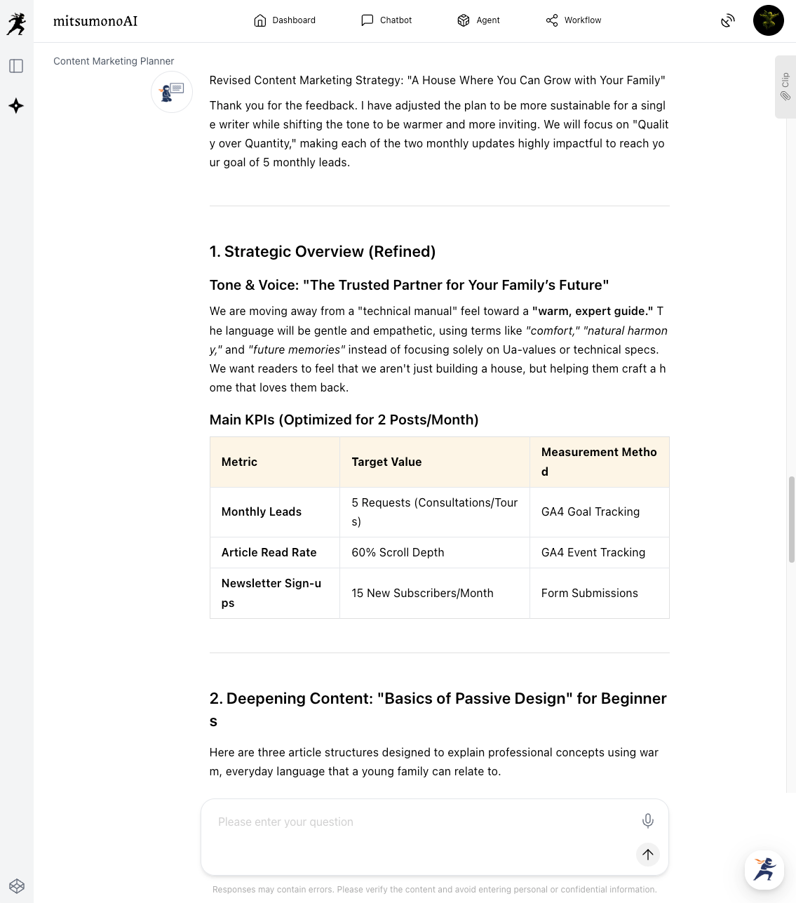 The plan proposed by the AI is the ideal version. This is where your skill as the "Editor-in-Chief" comes in. Use dialogue with the AI to fine-tune the plan to fit your company's real-world situation.