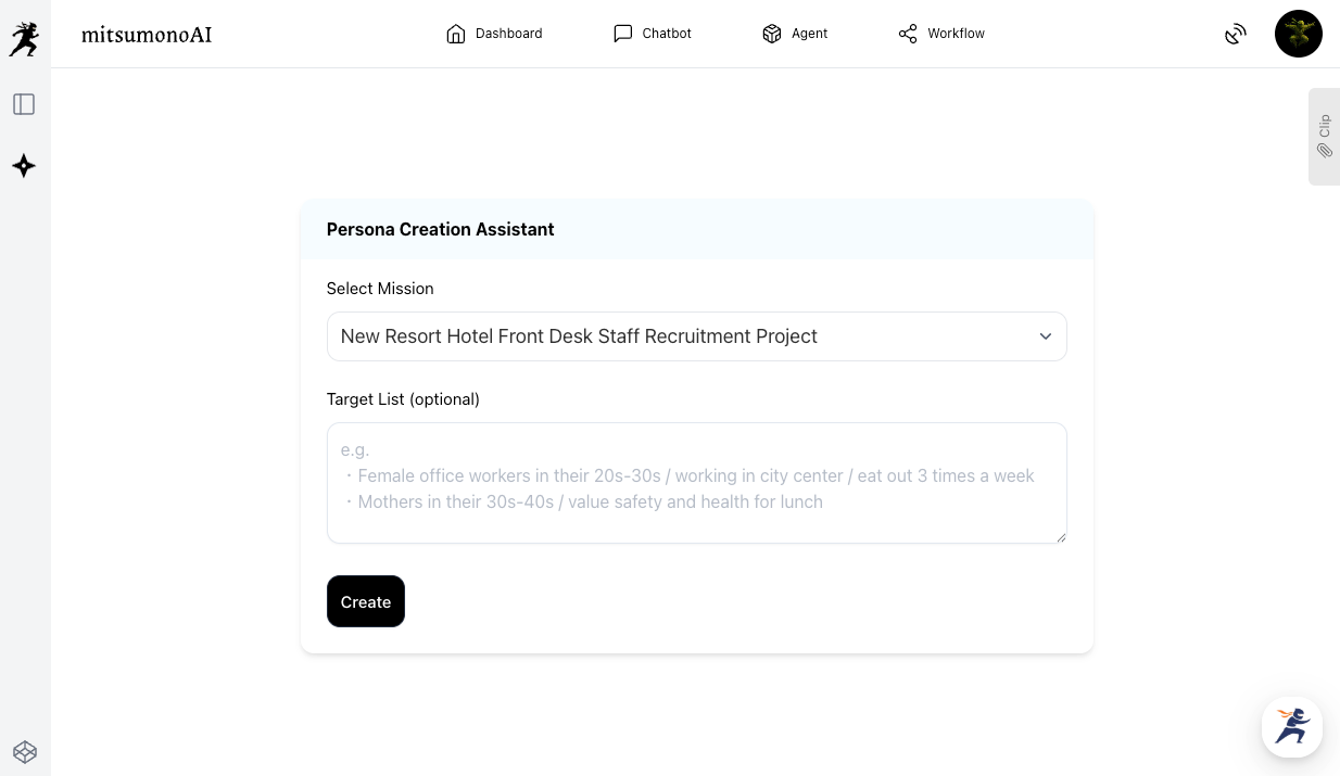 Based on the mission registered in Step 1, have the Persona Creation Assistant create the most ideal candidate profile (persona).
