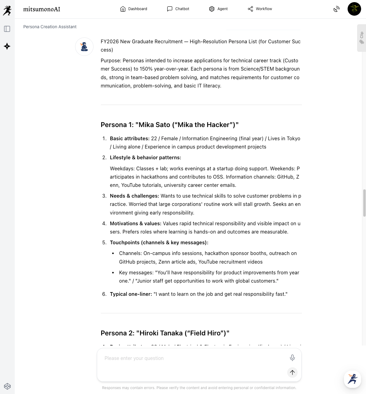 By linking AI tools, the series of processes in recruitment activities is significantly reduced. This streamlines everything from persona definition and job content creation to document screening and candidate communication, establishing an environment where recruiters can concentrate on building relationships with candidates. As a result, it contributes to the acceleration of the overall hiring process and the smooth acquisition of the desired talent.