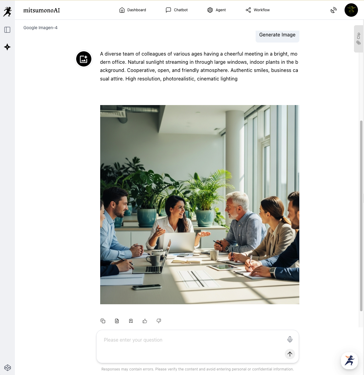 Visuals are crucial for conveying a company's appeal on job sites and owned media. The AI generates original, high-quality images of your company's own "working environment" and "employee atmosphere," which stock photos cannot convey, simply by providing text instructions.