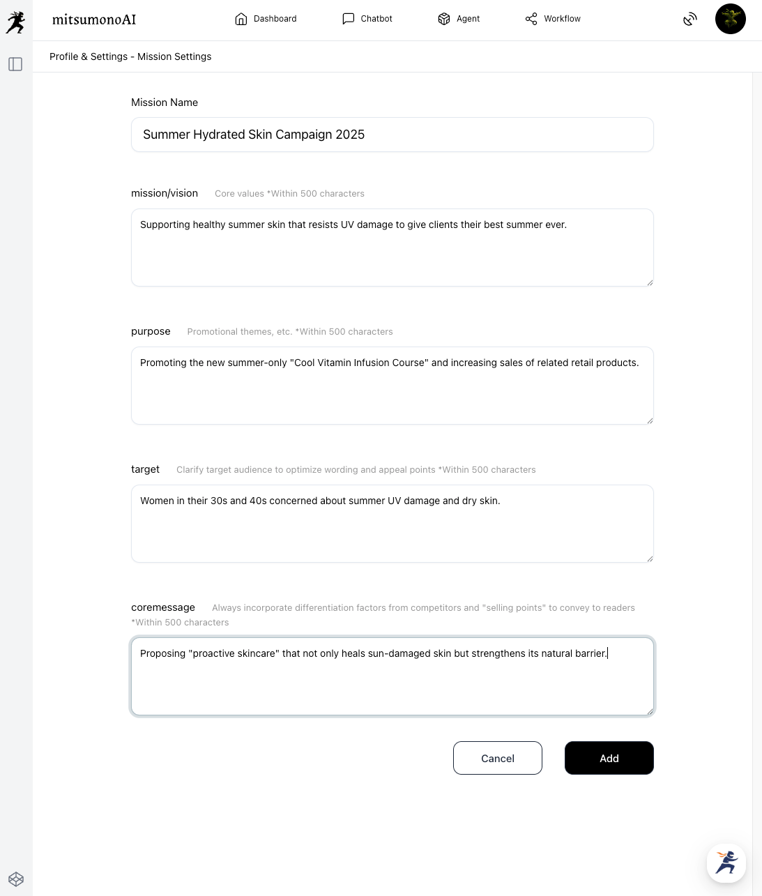 By registering a Mission, you ensure that all subsequent AI suggestions remain consistent.