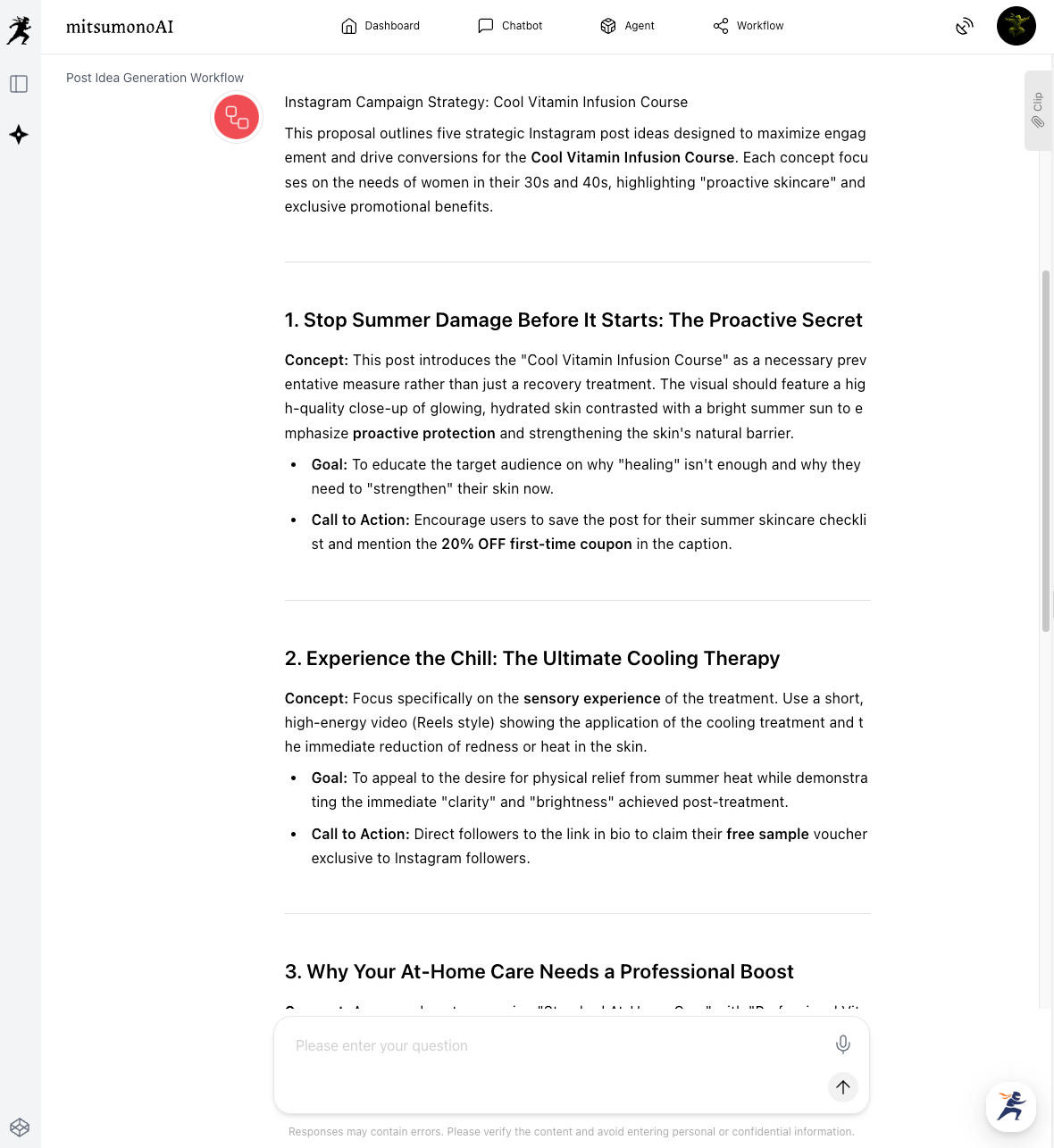 First, use the Post Idea Creation Workflow to mass-produce various creative angles for the campaign.