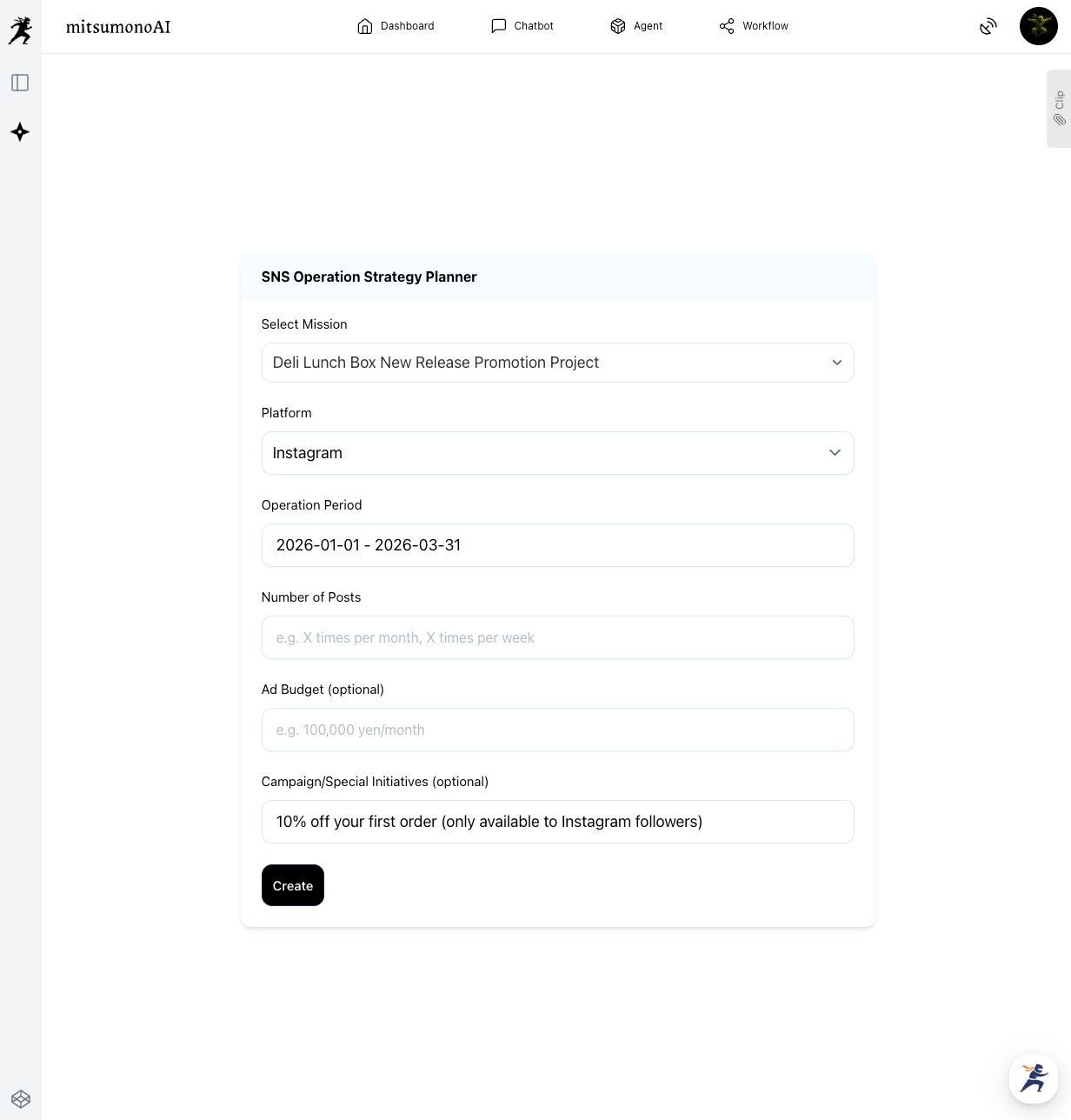 With mitsumonoAI, you can consistently execute everything from menu development—capturing takeout market trends and efficiently developing new products that resonate with the target audience—to the formulation of an "SNS Operations Strategy."