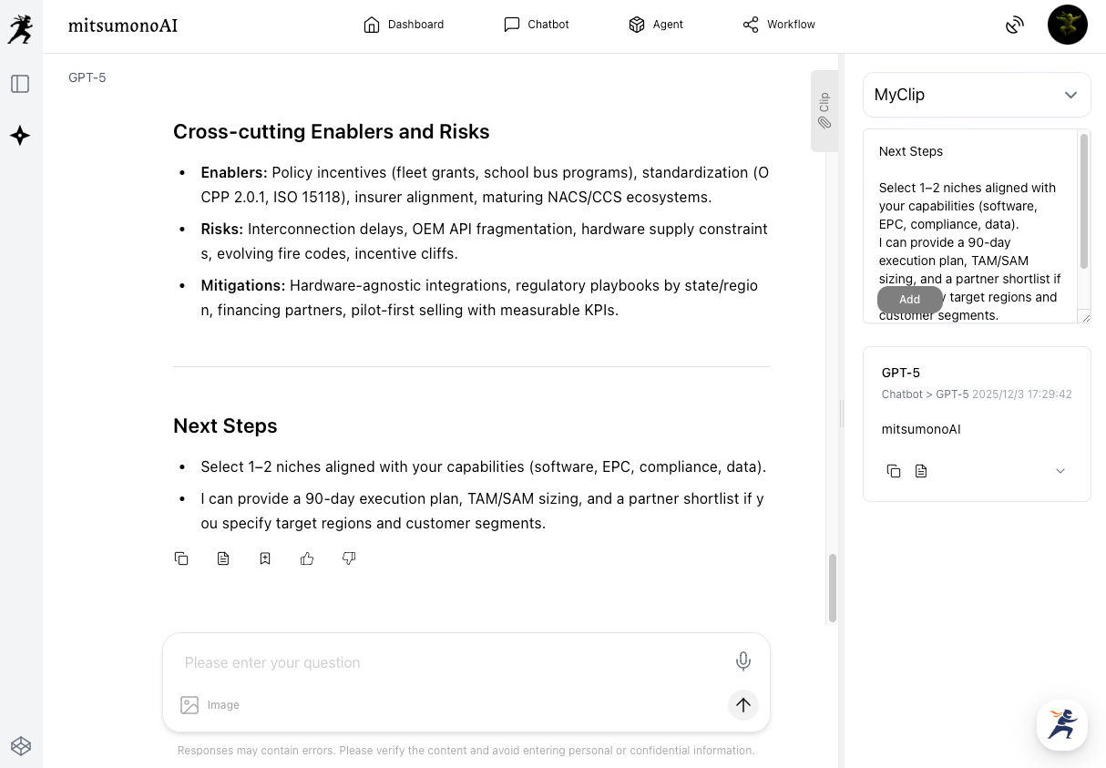 mitsumonoAI is your thinking partner in business and an excellent assistant that efficiently handles tedious tasks. We encourage you to use this guide as a reference, actively incorporate the tool into your daily work, and experience its benefits firsthand.