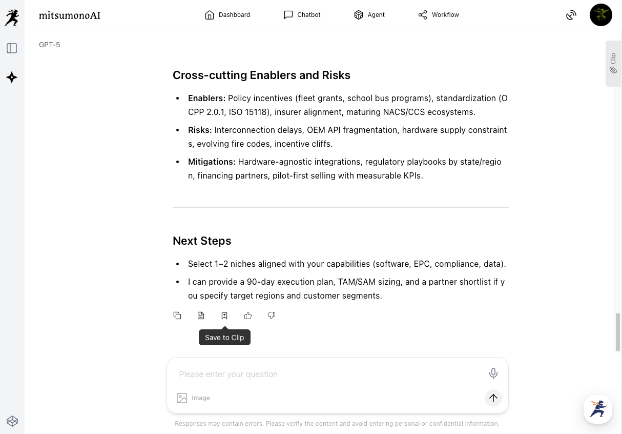 Because the AI answers with an understanding of your business, it creates specific, immediately actionable proposals and deliverables, not just general statements. - Efficient Workflow Execution