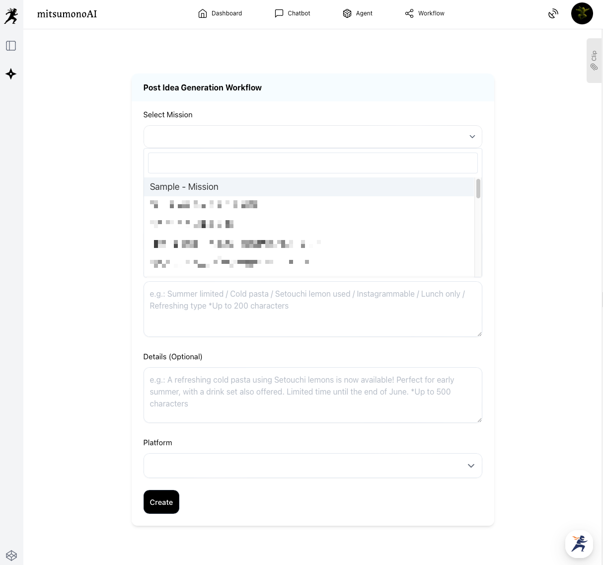 Crucially, some Agent and Workflow features cannot be used without a registered "Mission." Be sure to complete this setting immediately after your first login.