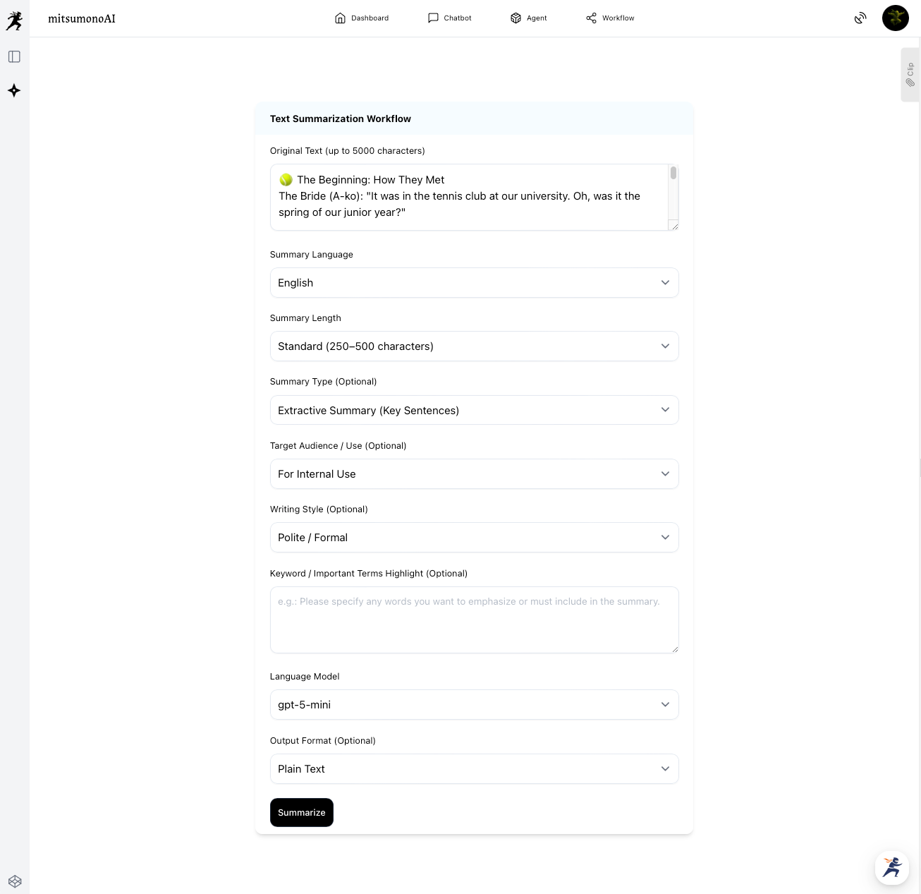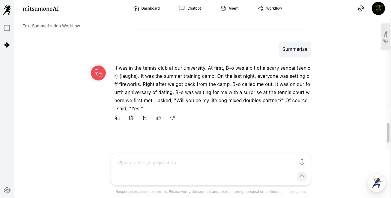 The Text Summarization Workflow clearly verbalizes and organizes keywords that indicate the couple's values, even from long conversations including casual talk.