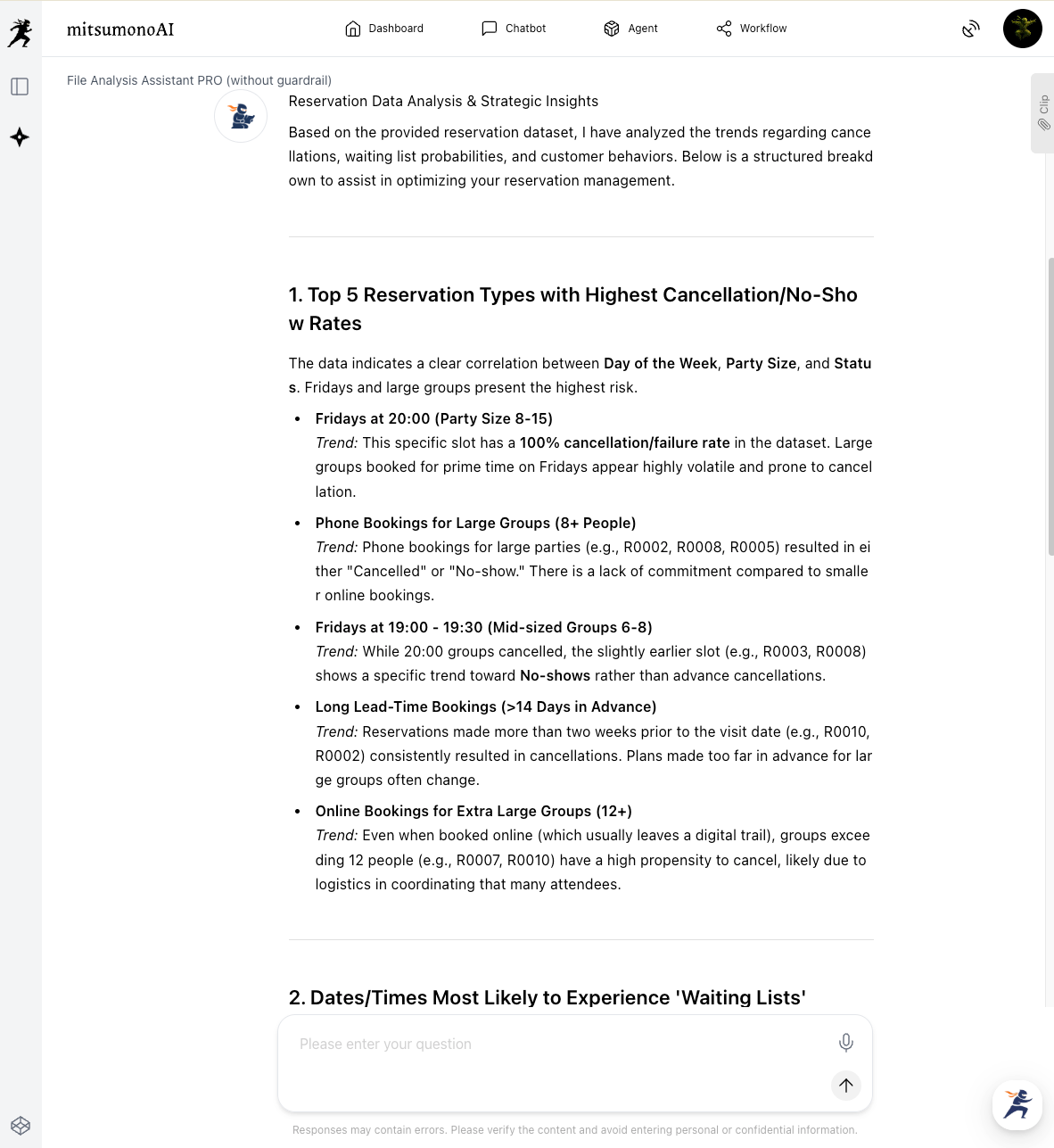 In the first step, use mitsumonoAI's File Analysis Assistant PRO to have the AI deeply learn the valuable reservation and customer data accumulated in your business.