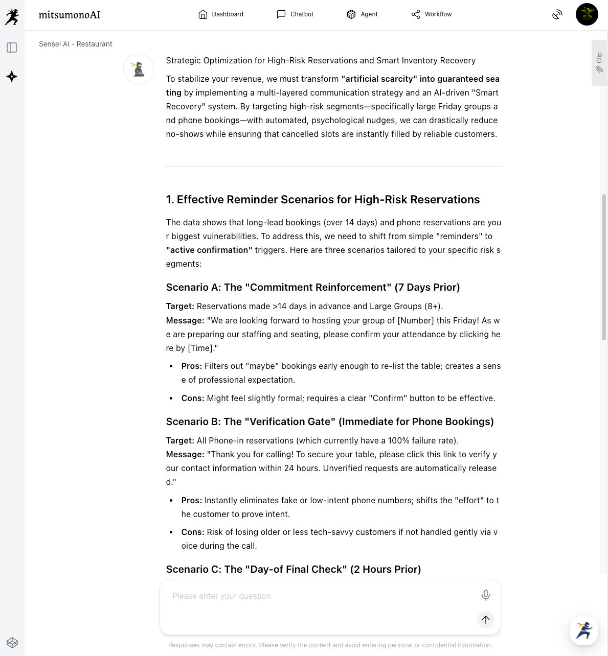 Launch Sensei AI - Restaurant to delve deeper into the results from Step 1 and request scenario proposals.