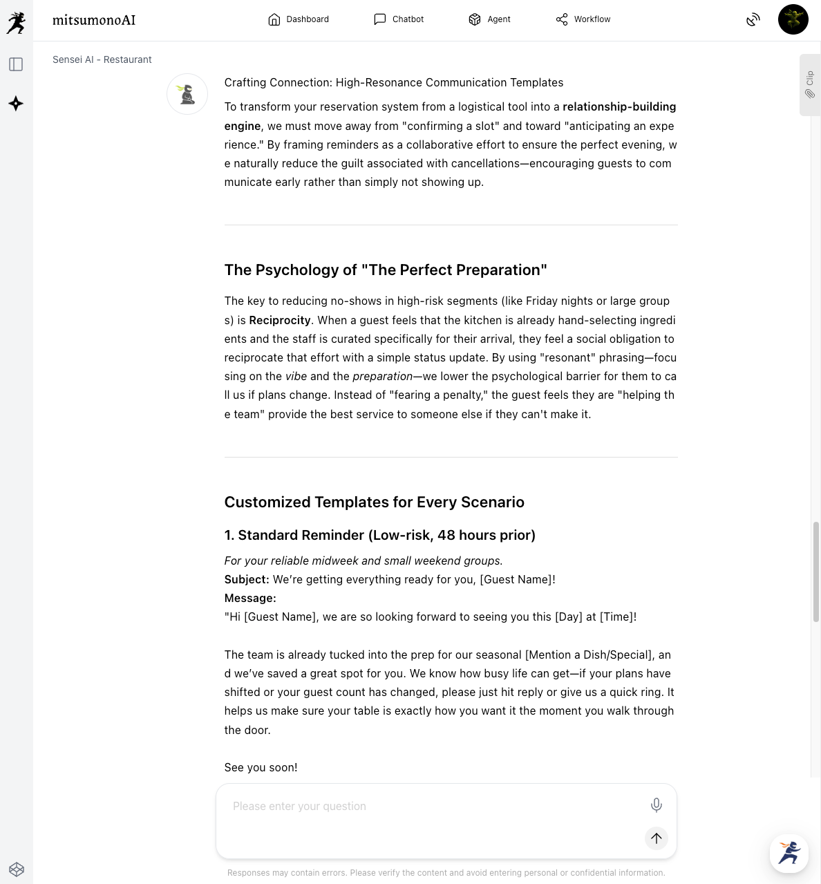 Eliminate no-shows and missed opportunities with AI. Learn how to use mitsumonoAI to analyze reservation data, forecast demand, and automate personalized reminders to maximize revenue and enhance customer satisfaction in the hospitality and restaurant industries.