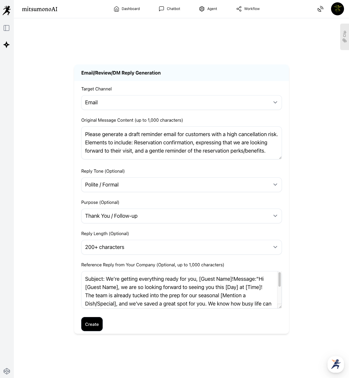 - Use Email/Review/DM Reply Creation to automatically generate resonant, personalized reminder messages.