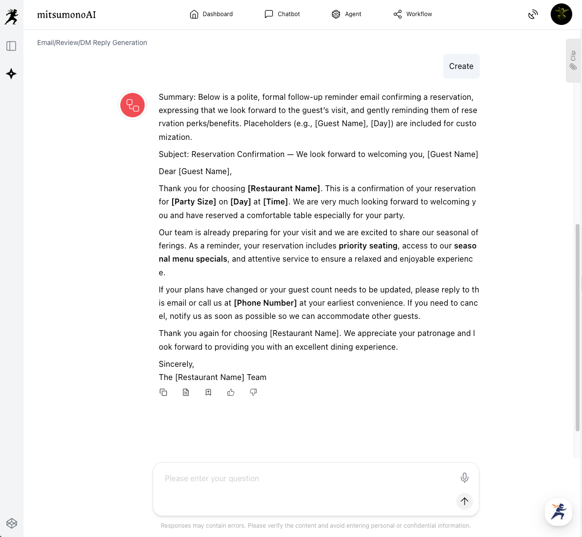 - Launch mitsumonoAI's Email/Review/DM Reply Creation and input the insights obtained in Step 2.