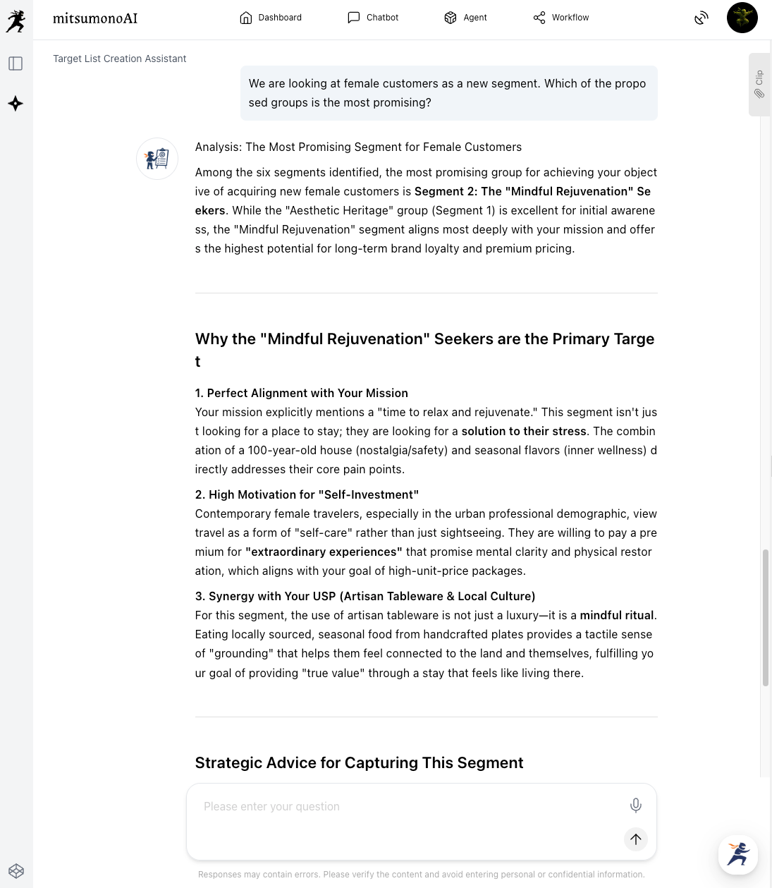 By using AI, you can efficiently execute the entire process: objectively analyzing strengths, discovering unexpected customer segments, and planning the perfect experience for them.