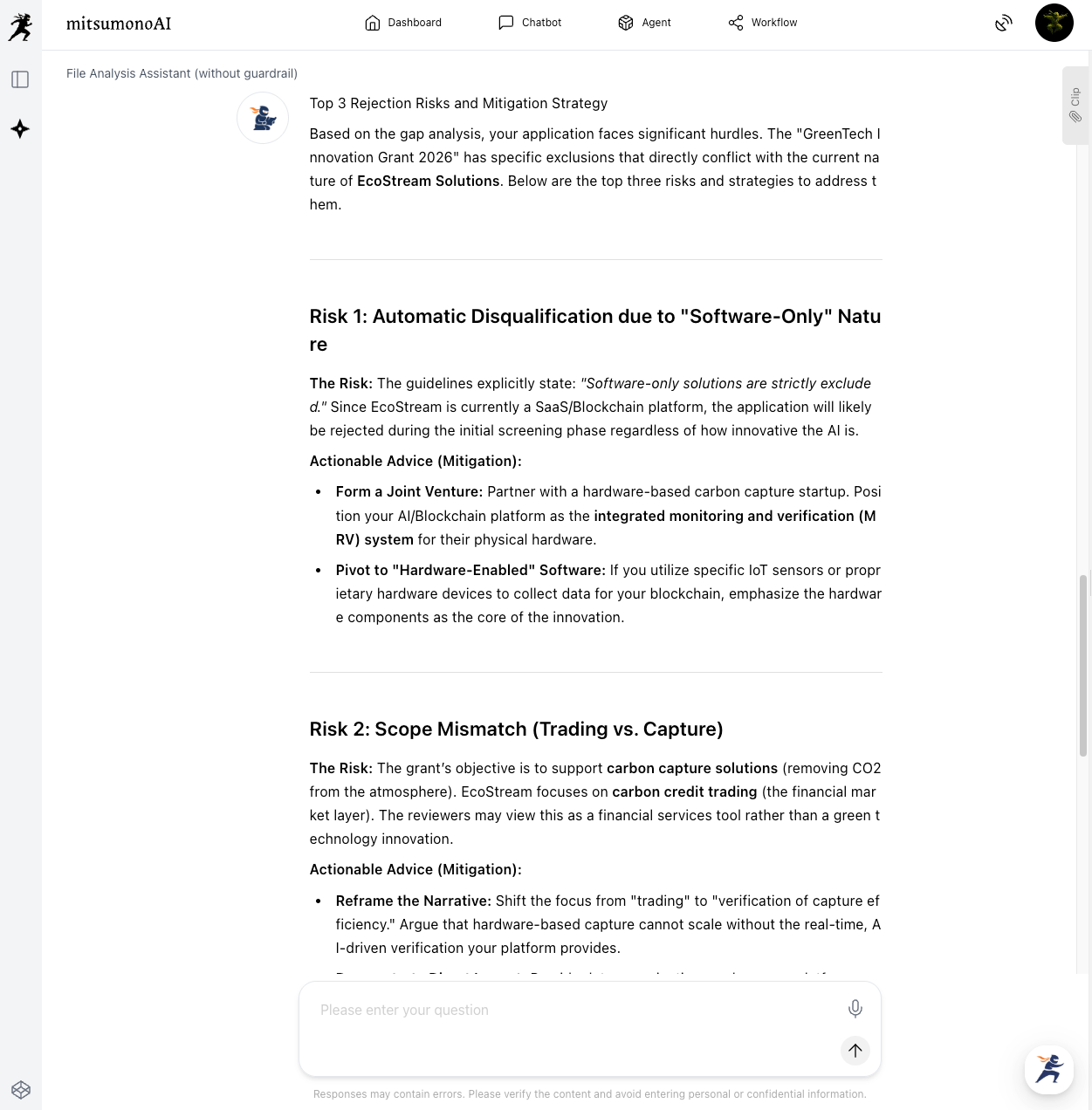 The integration of AI into your funding strategy is essential for sustainable growth. In the past, the high cost of expert analysis and the risk of missing critical details were constant hurdles. mitsumonoAI solves these issues through the following: