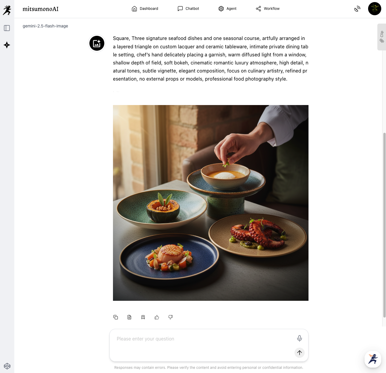 By entrusting the design of the visual concept and prompt generation to AI, the ryokan manager can focus on "pursuing flavor" and "customer hospitality." Use this application method to leverage the specialized instructions and reference images guided by AI, evolving your ryokan's wonderful cuisine into a "web marketing centerpiece."