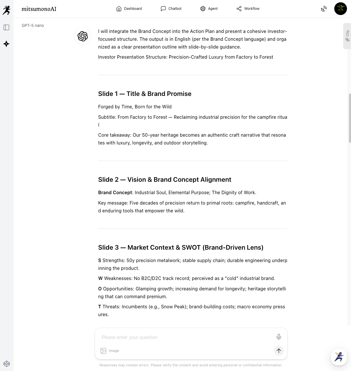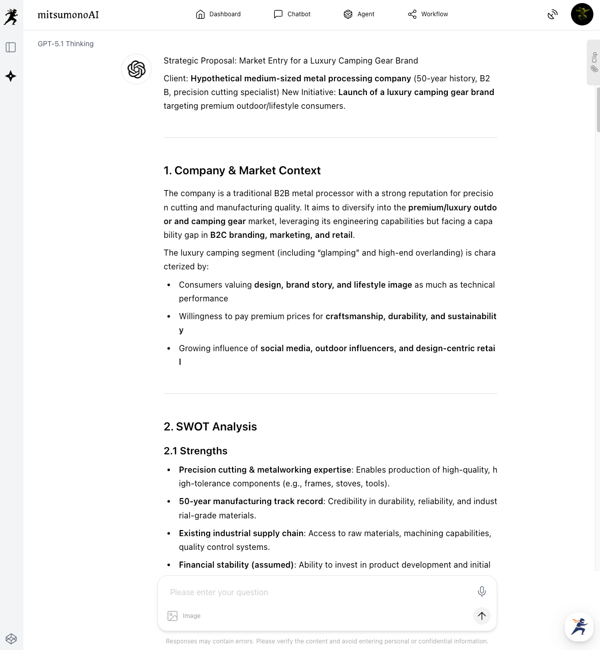 - Using Sensei AI: First, show the plan to "Sensei AI - Manufacturing" and ask, "As a factory manager, point out the concerns with this plan." By feeding that feedback back to GPT, you elevate it to an "executable strategy" rather than a pipe dream.