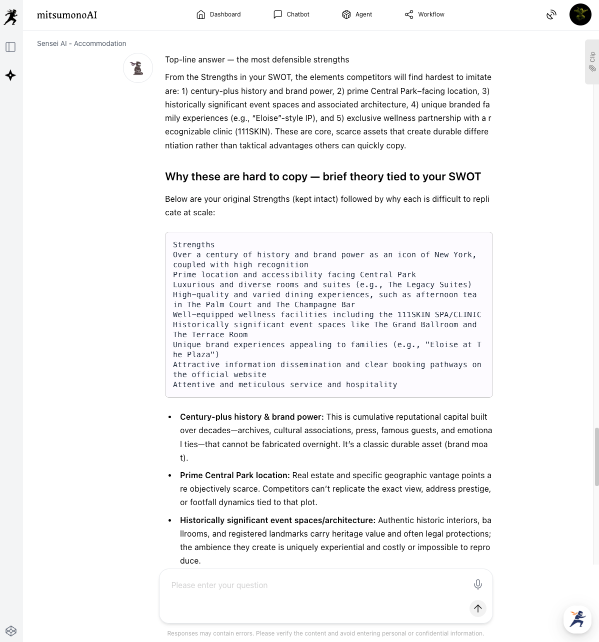This is where the collaboration between the "In-house SWOT Analysis Assistant" and "Sensei AI - Accommodation Industry" proves useful.