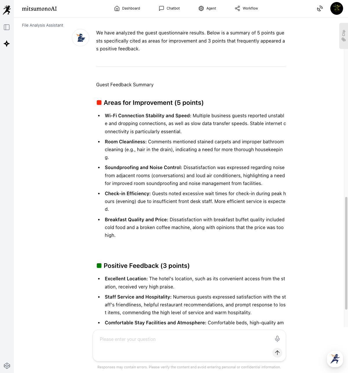 Based on open-ended responses from accommodation facility questionnaires, you can identify issues and formulate feasible on-site improvement measures with AI, without relying on experience or intuition.