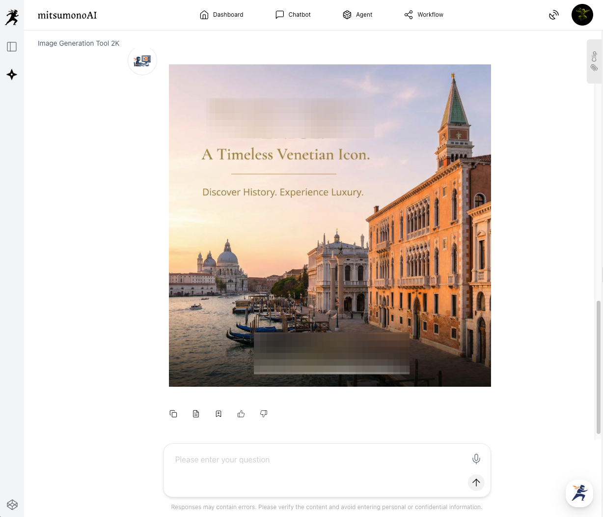 - Generate: The AI will extract the essence of the lagoon view and Venetian luxury.
