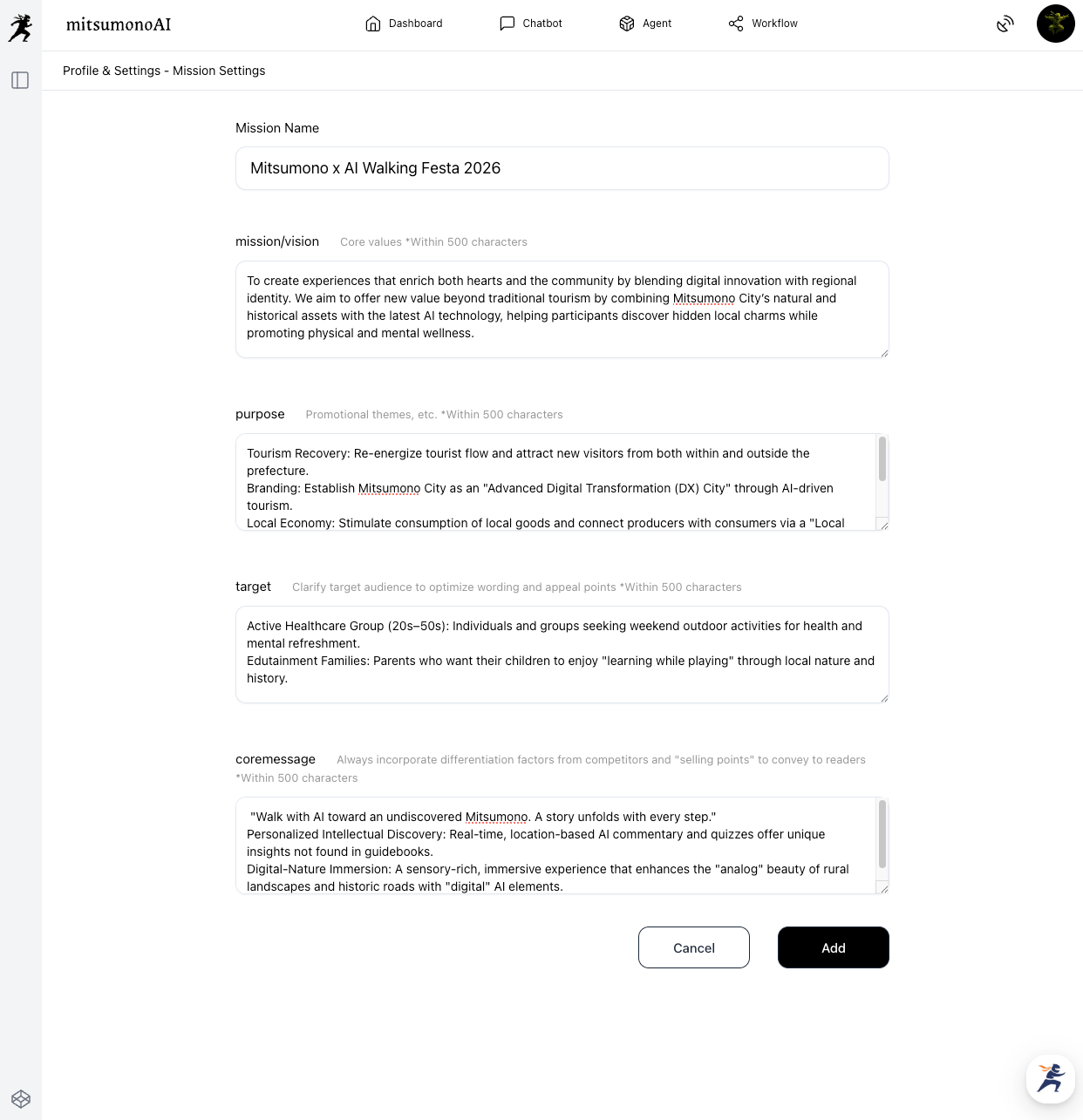 Once finalized, register the content into the mitsumonoAI "Mission Registration" function.