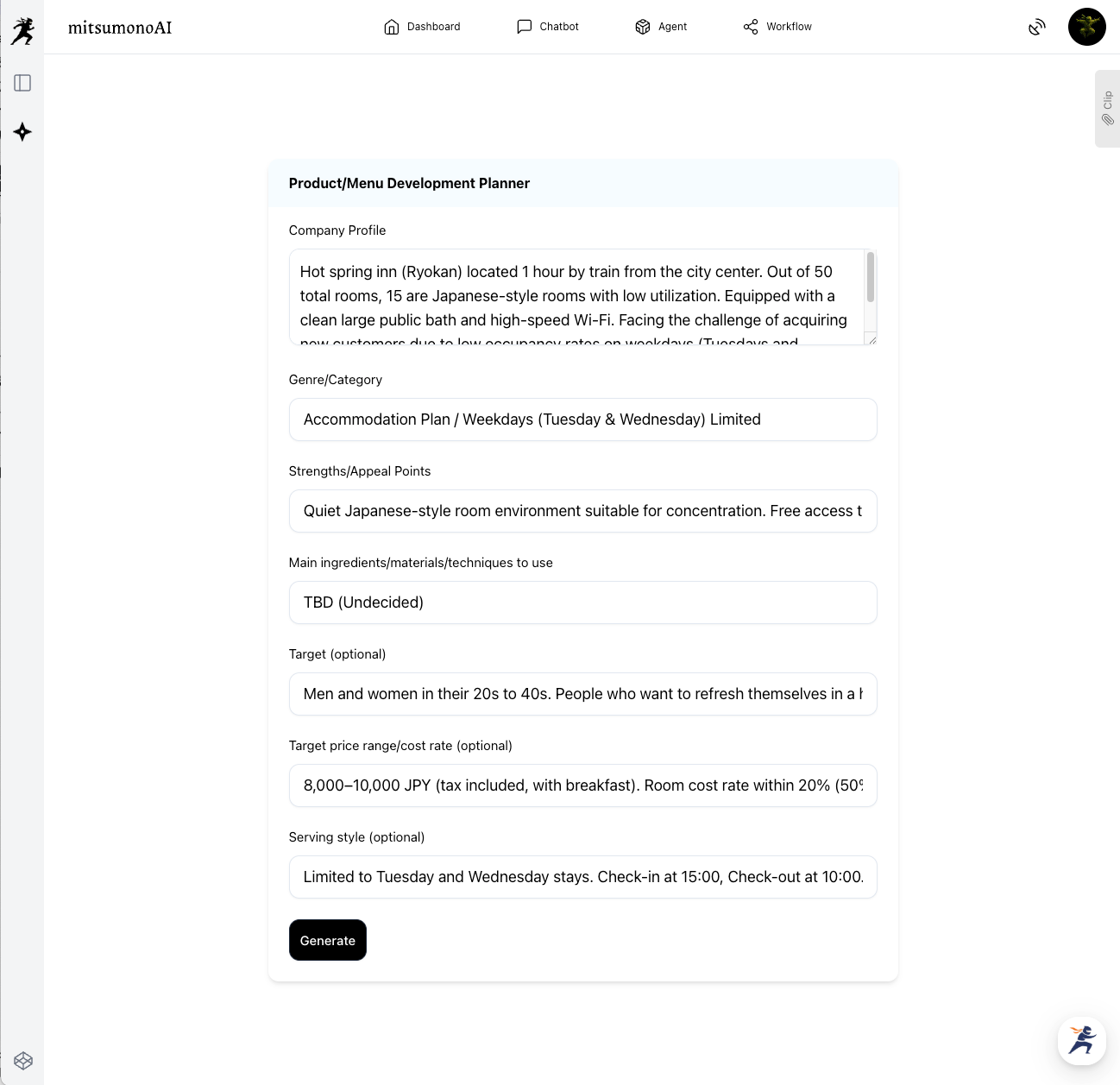 This article explains the specific procedures for leveraging two AI tools—the Product/Menu Development Planner and the SNS Operations Strategy Planner—to develop a limited-time package targeting niche customers for low-occupancy weekdays (Tuesdays and Wednesdays), all the way through to formulating an SNS marketing strategy to effectively promote that package.