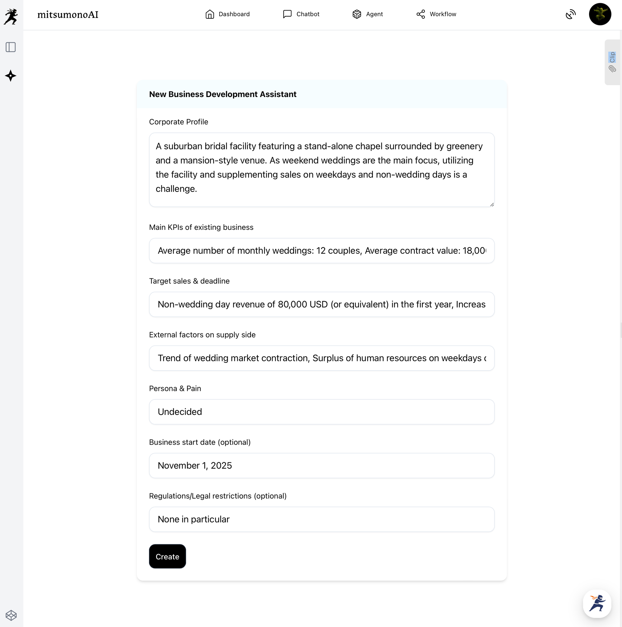 2. Inputting Information into the "New Business Development Assistant" to Output Ideas