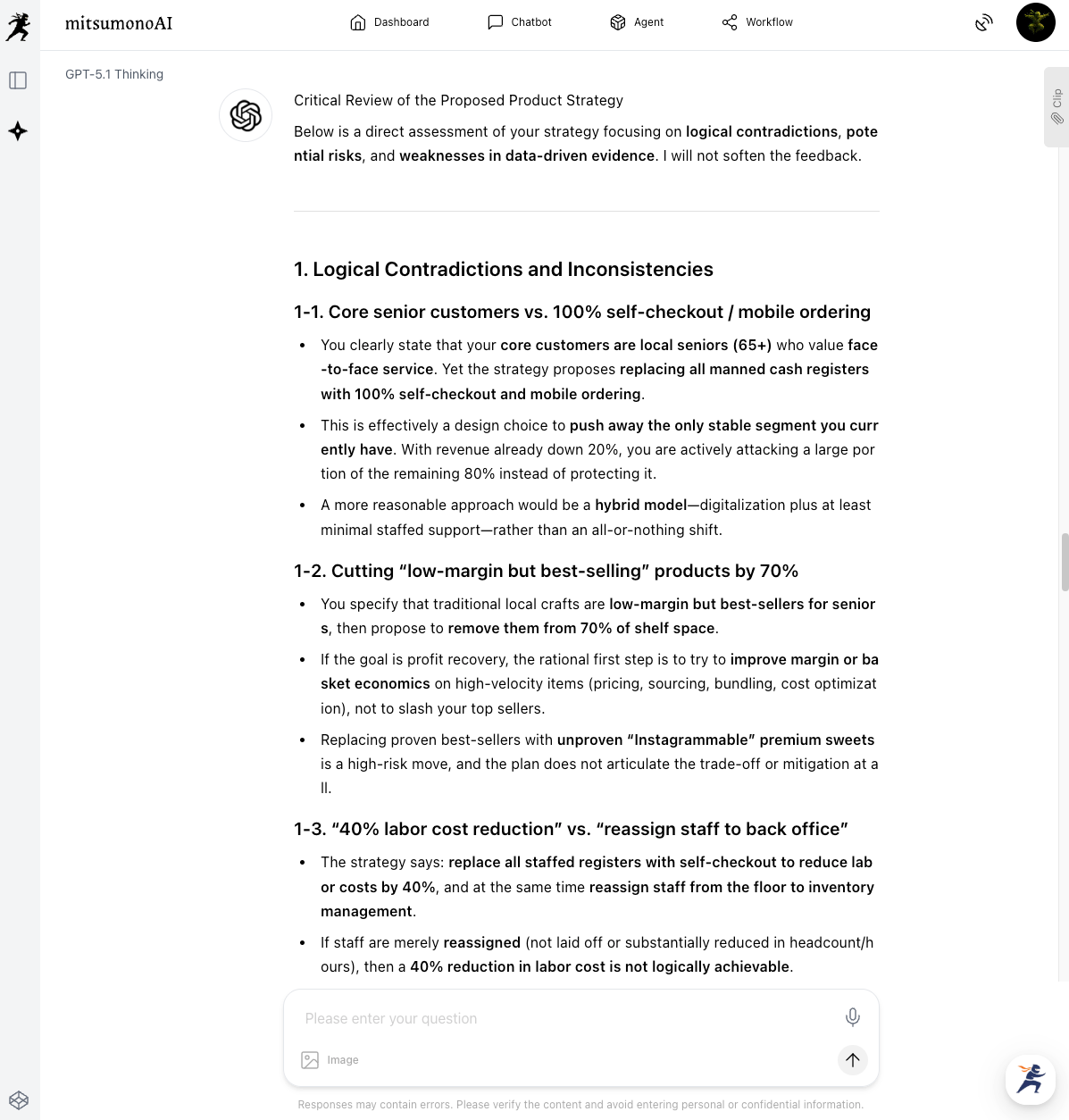 "Please point out any 'logical contradictions,' 'potential risks,' or 'weaknesses in data-driven evidence' regarding the following product strategy. There is no need to sugarcoat your feedback or worry about my feelings.