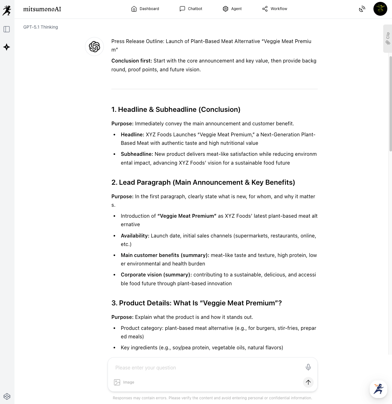 mitsumonoAI: Acting as both "AI Brain" and "Risk Auditor" for Press Release Creation