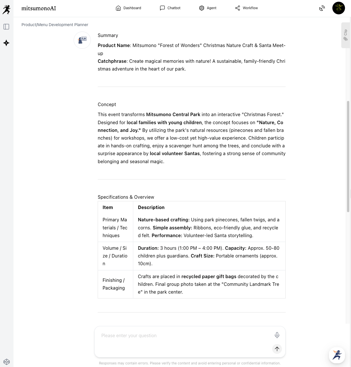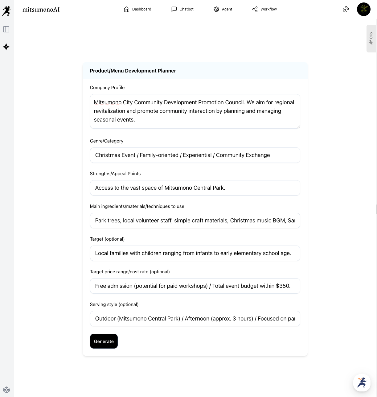 The "Product/Menu Development Planner" is a feature designed to generate ideas for new products or menus based on specific criteria such as target audience, budget, and available materials. An "event" is essentially a "product" that provides a specific "experience" to its participants. By applying this logic, you can unlock several professional advantages: