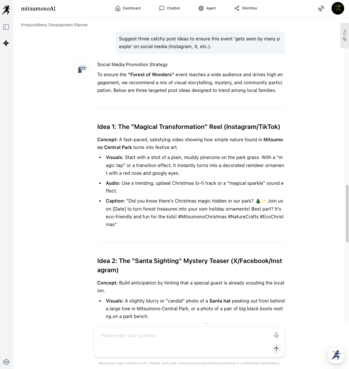 - Executing PR Activities: Use social media, community bulletin boards, newsletters, and websites to spread the word. You can extract effective catchphrases and announcement texts directly from the ideas generated by the Product/Menu Development Planner.