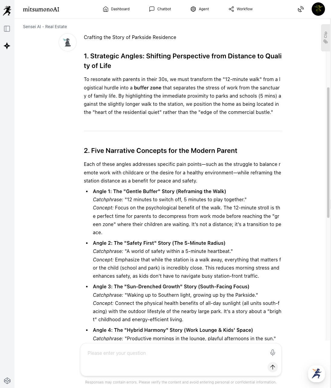 mitsumonoAI provides specialized AI consultants and writing-focused assistants to solve these real estate-specific challenges. It’s like having a team of veteran copywriters who know the industry and editors who optimize content for every platform.
