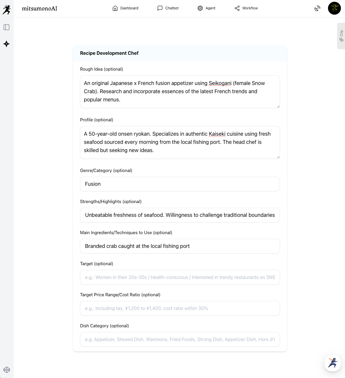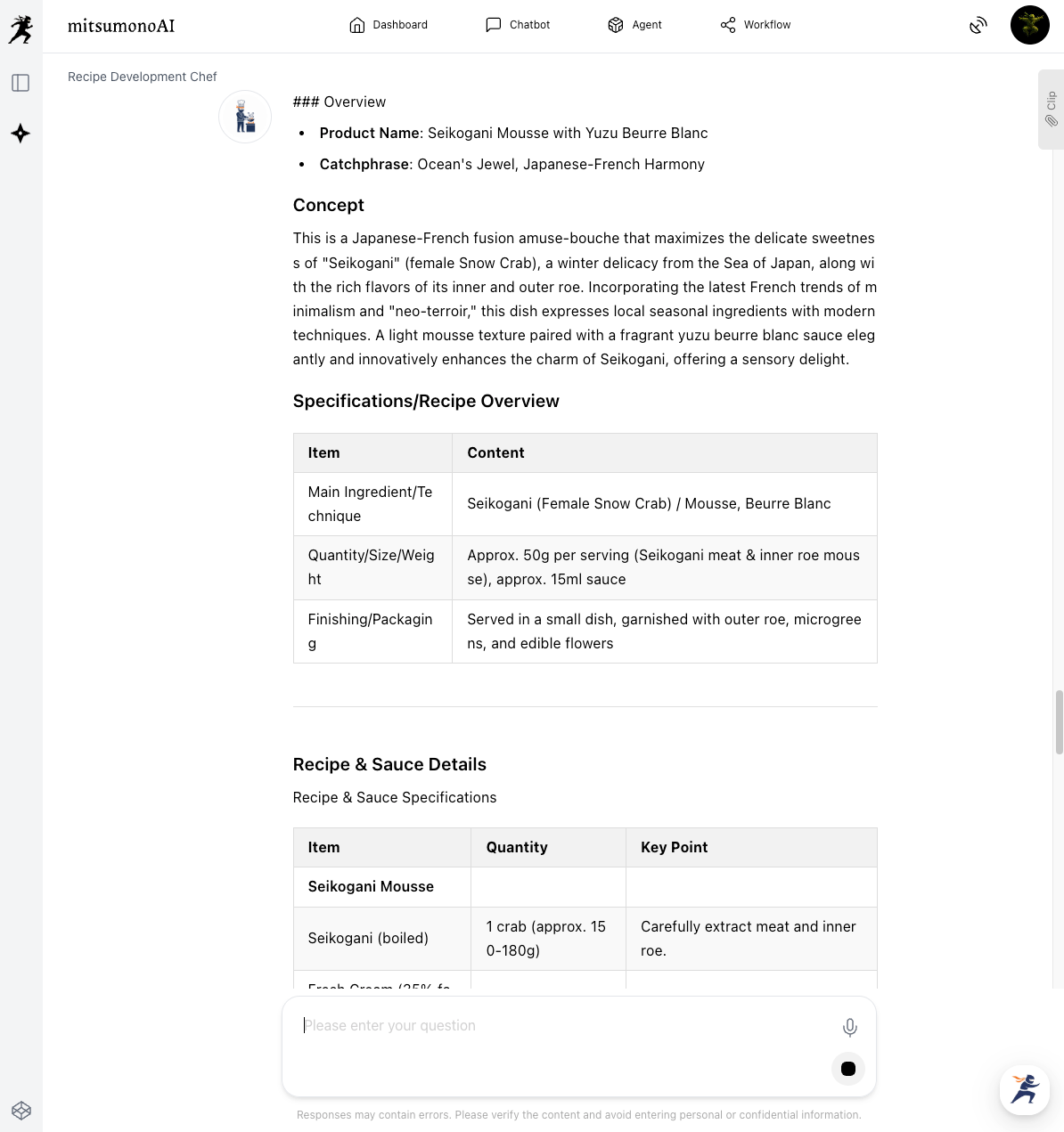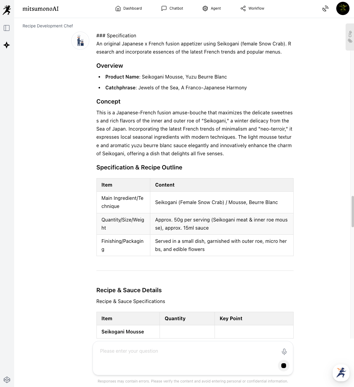 mitsumonoAI's "Recipe Development Chef" is now available to you. The way for restaurants to thrive going forward is not to fear the AI, but to master it as the ultimate partner.
