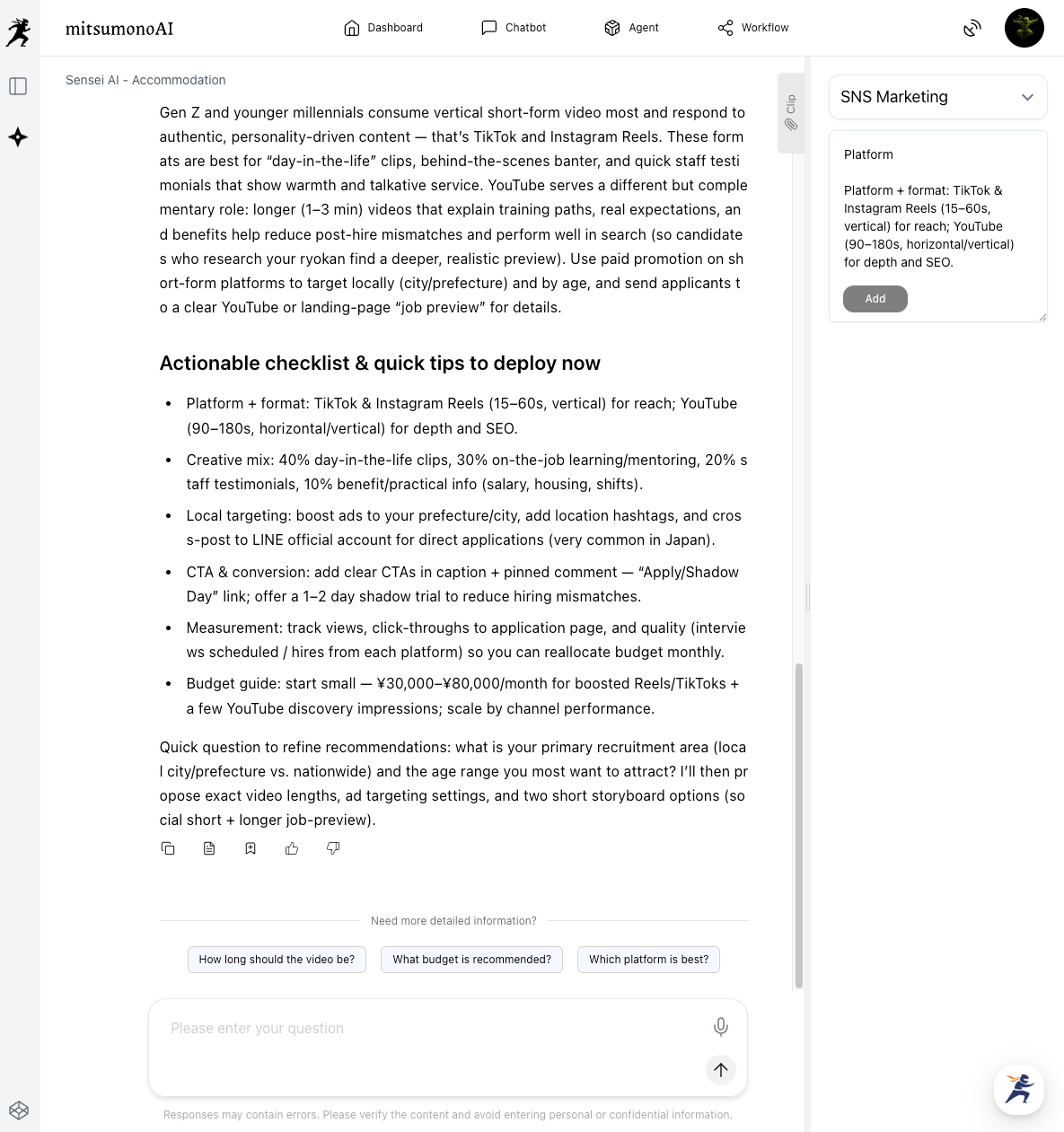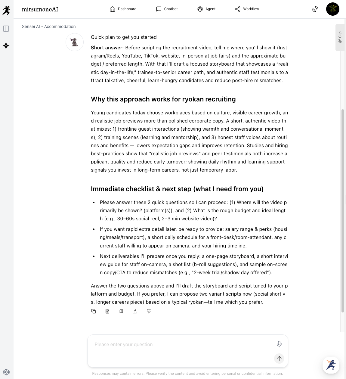 ▶︎ Sensei AI (for the restaurant/accommodation industry, etc.)