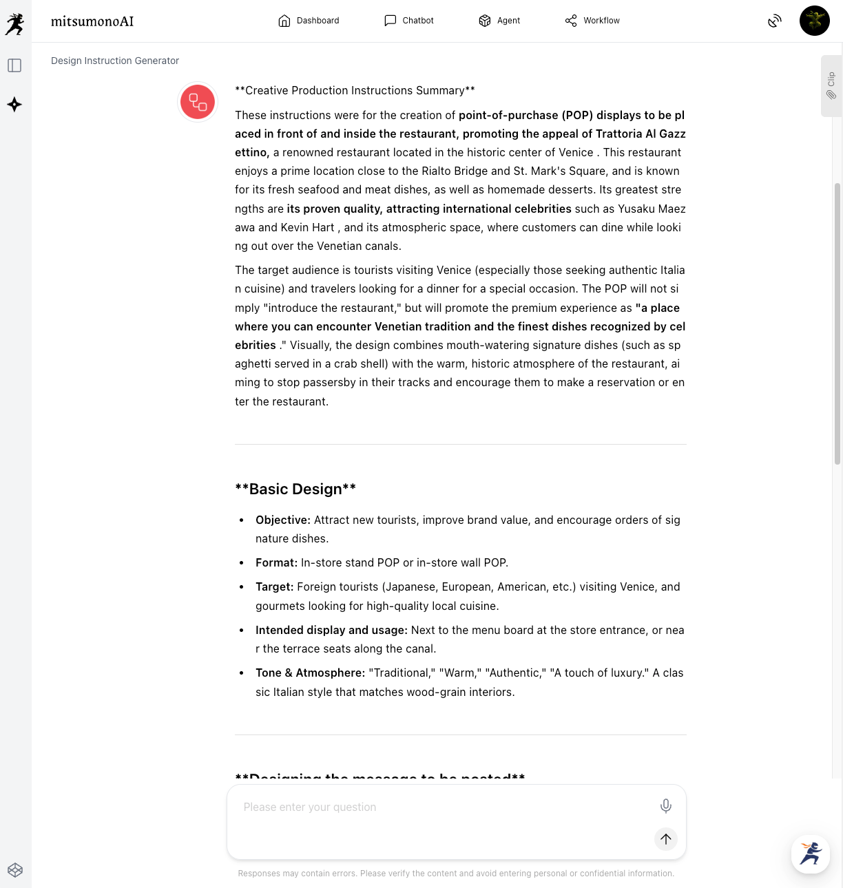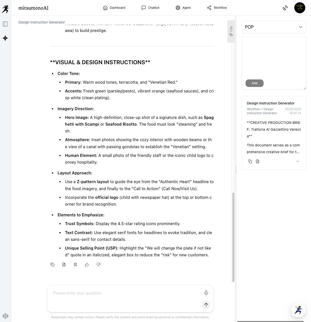 First, we use the Design Instruction Generator to translate your menu's flavors into a visual strategy.