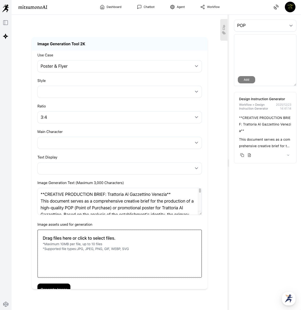 Now, open the Image Generation Tool 2K. Since your instructions are already in your Clip, the process is streamlined into just three items.