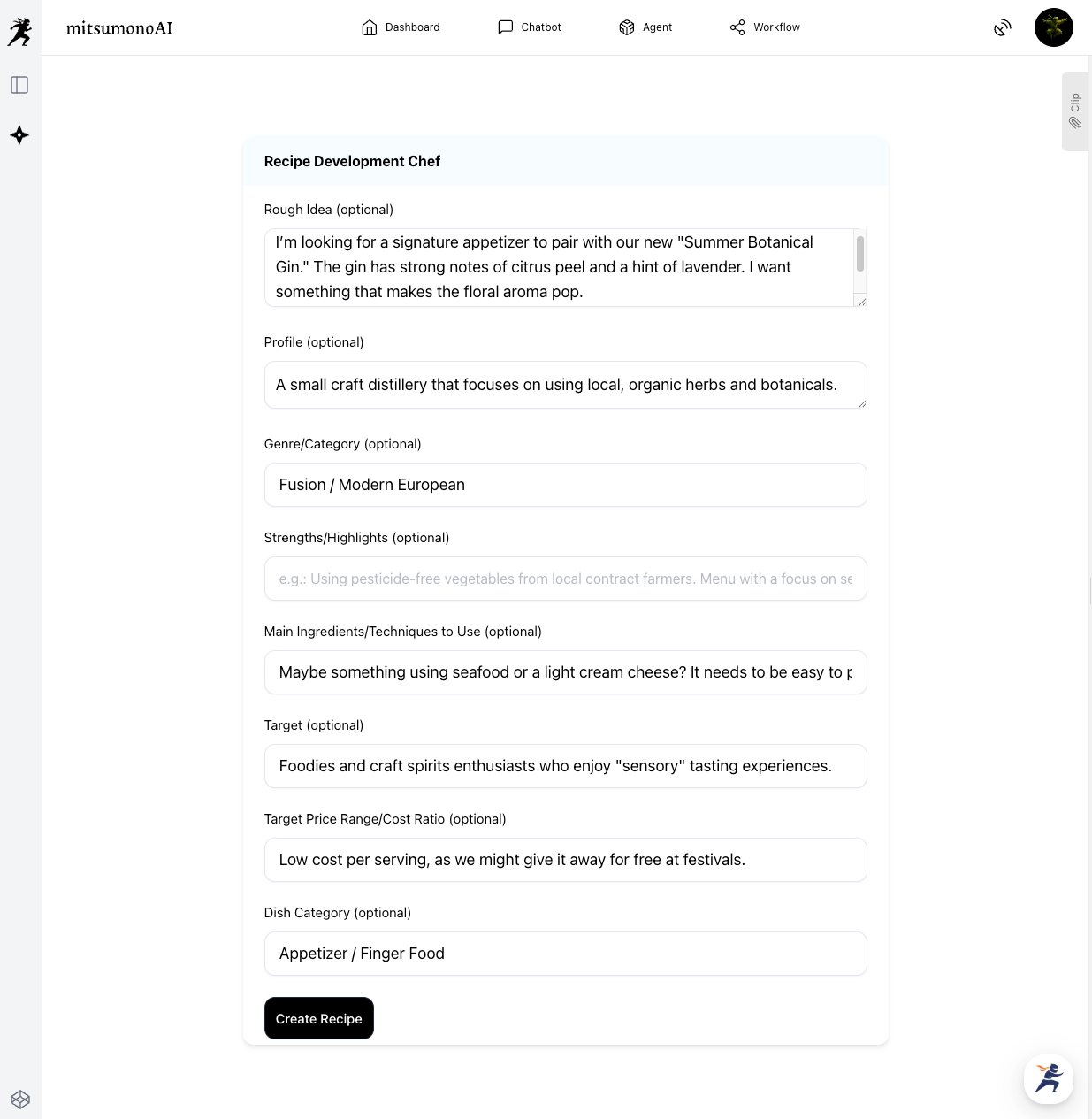 mitsumonoAI not only helps with recipe development, but also has a number of functions to support sales promotion for sake and food manufacturers, such as naming product labels, creating multilingual descriptions for overseas exports, and creating product descriptions for e-commerce sites.