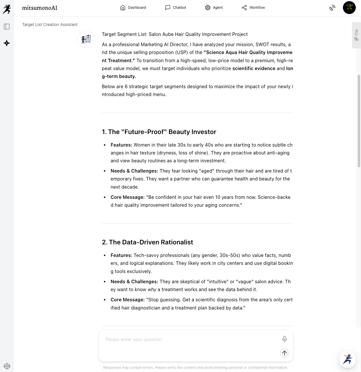Through this step, the AI accurately understands "who your salon exists for and what it aims to achieve," which significantly boosts the precision of all subsequent analysis.